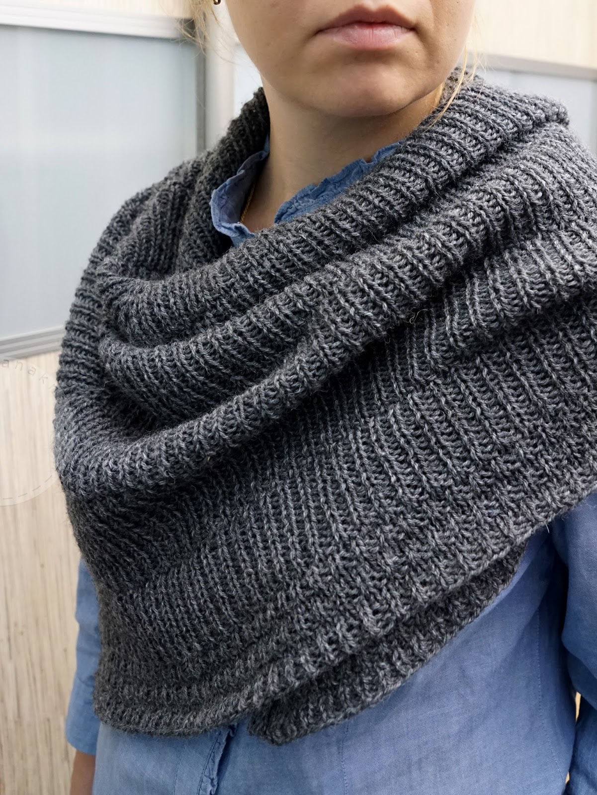 ...pokazać nie/nowy udzierg: chustę w "tradycyjnym" jak dla mnie – szarym kolorze, w prostej aczkolwiek efektownej formie oryginalnego projektu Justyny: b r i c k s